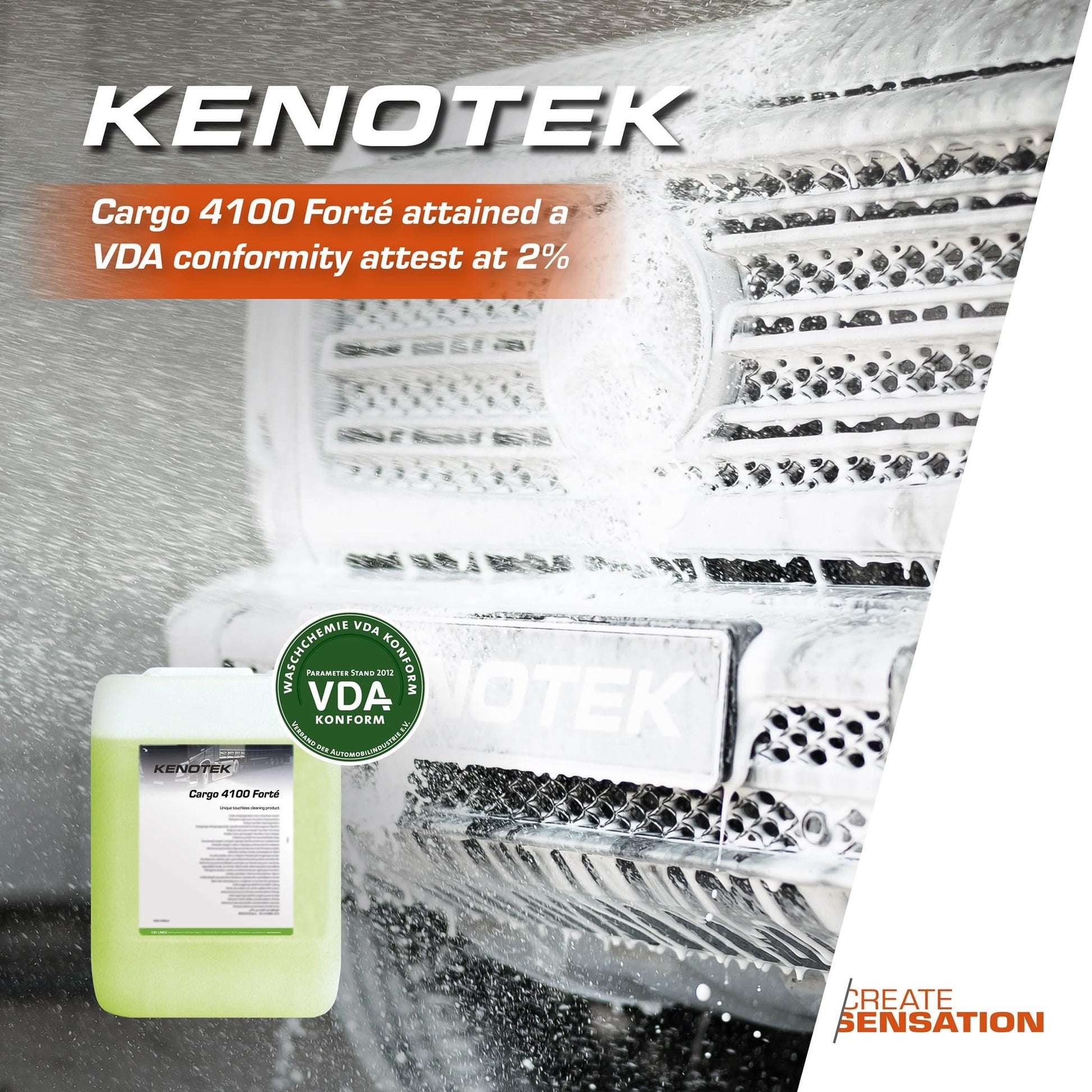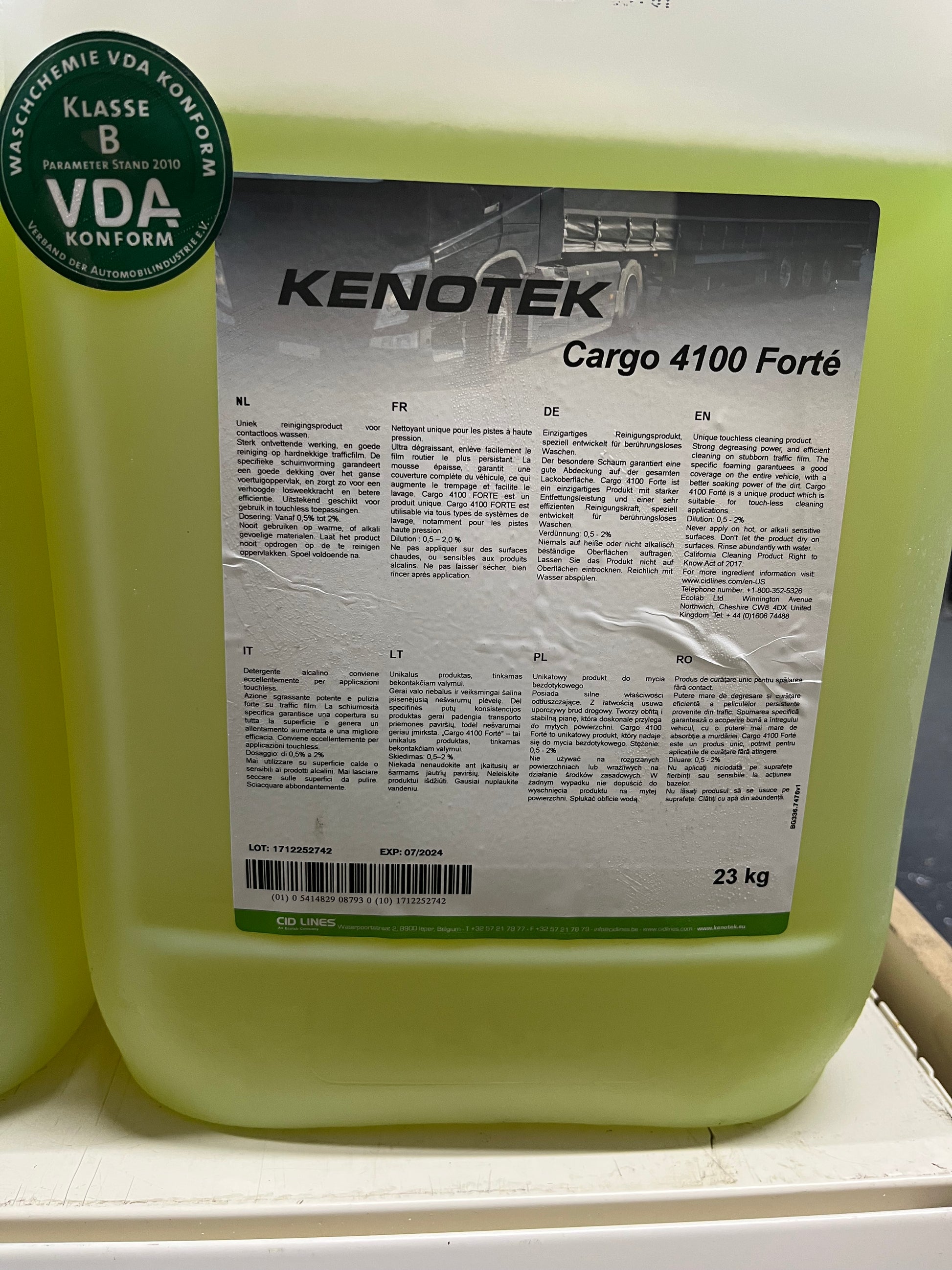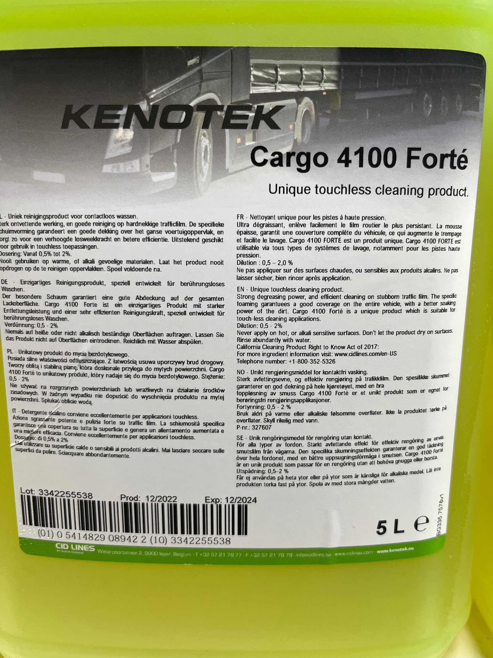 Cargo 4100 Forté is an extra strong, concentrated exterior cleaner for all vehicles. It has a strong degreasing power and ensures an efficient cleaning of stubborn traffic film. The specific foaming guarantees a good coverage of the entire vehicle and a better soaking power of the dirt. Cargo 4100 Forté is a unique product suitable for touch-less applications.