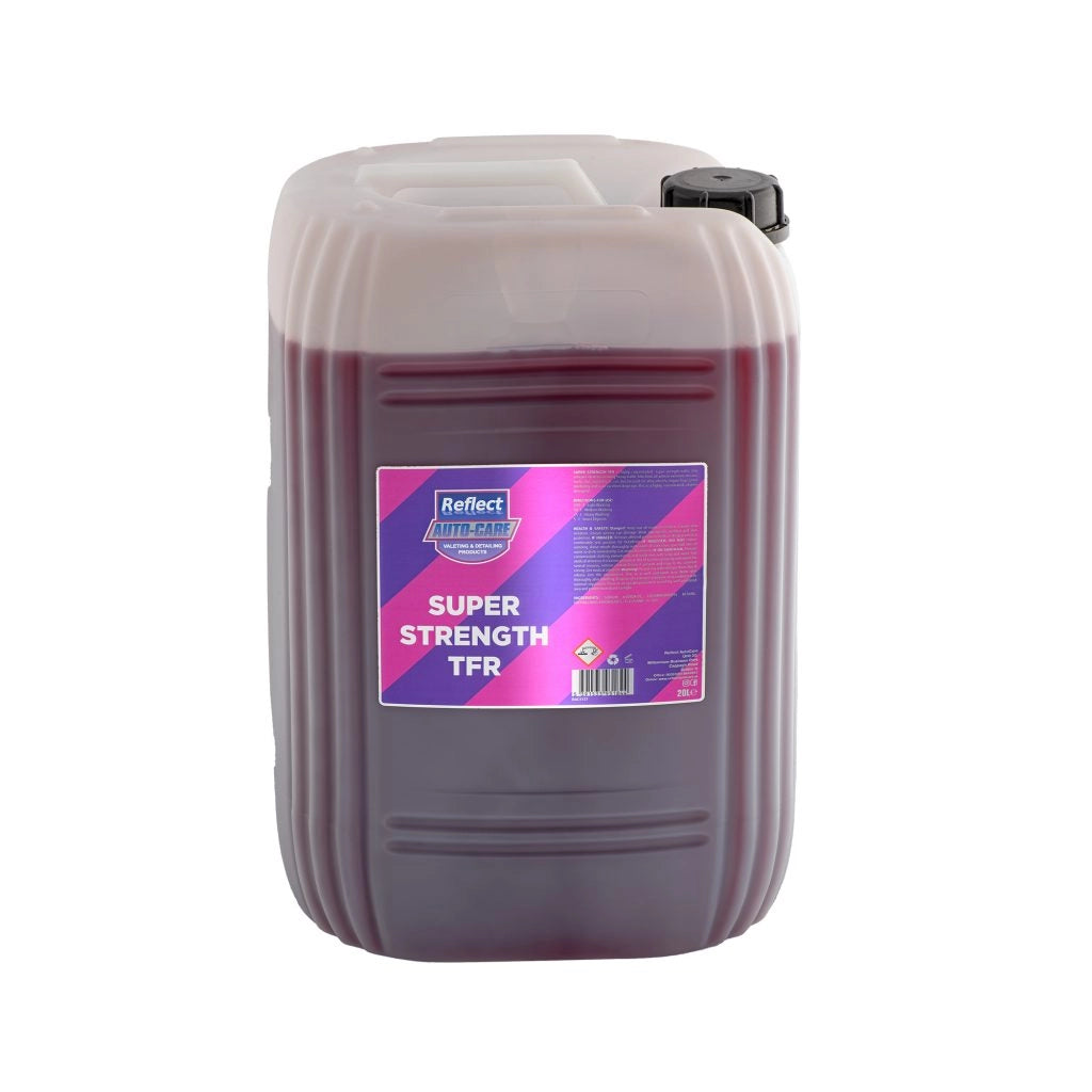 Super Strength TFR is highly concentrated super strength traffic film remover ideal for cleaning heavy traffic film from all vehicle exteriors on cars, trucks, buses and bikes. It can also be used on alloy wheels, engine bays, plant machinery and is an excellent degreaser. This is a highly concentrated, alkaline detergent!